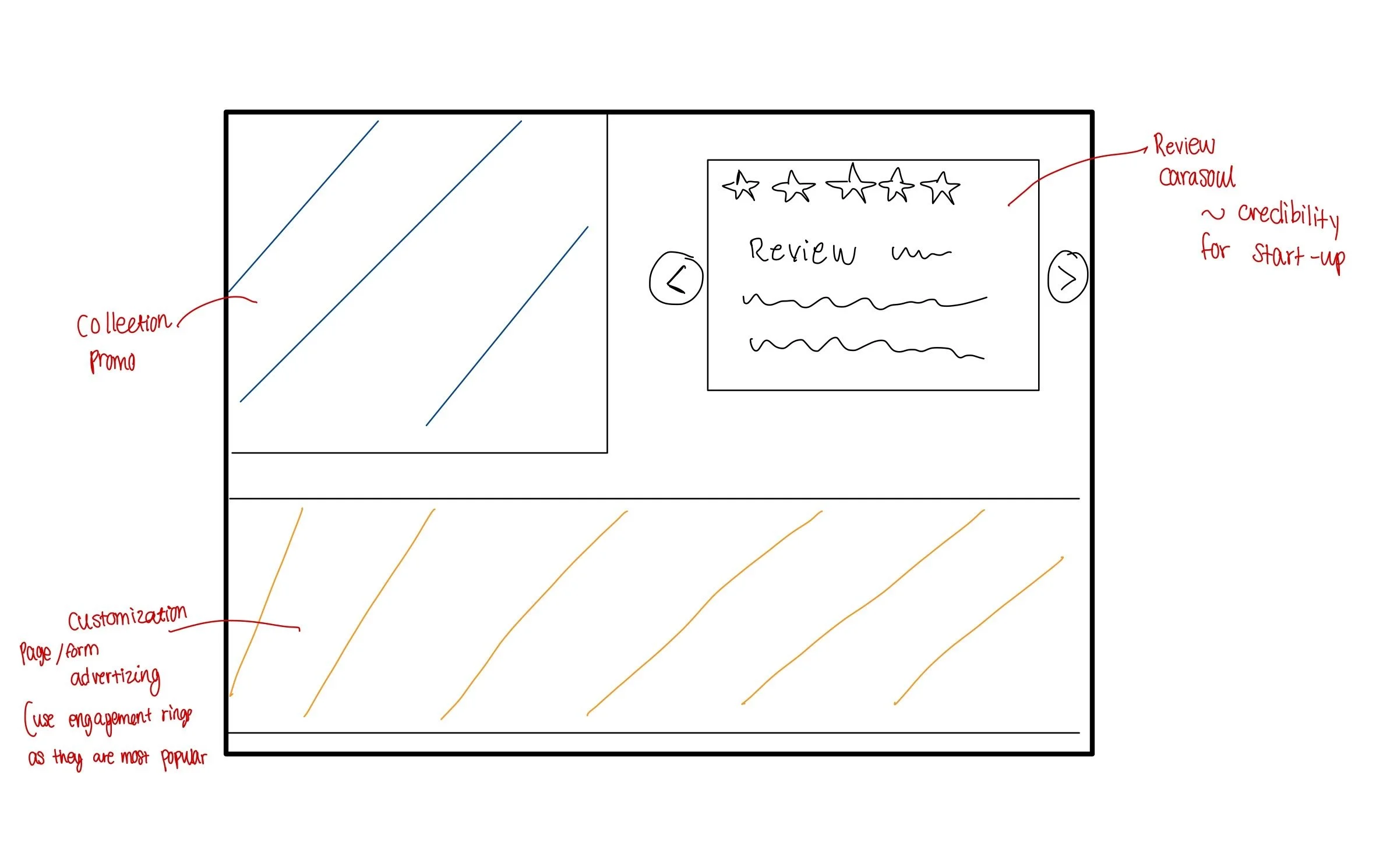 As I was creating iterations of designs, I hosted usability tests and user interviews with 3 participants to deeply understand the preferred navigation flow when searching for custom jewelry. Speaking to fine jewelry enthusiasts helped me understand the level of personalization they expect in their shopping experience. In these sessions I walked though diagrams of navigation flows, and early stage mock designs to gather unexpected points of friction, confusion and general thoughts to help me visualize ways to explore the products.